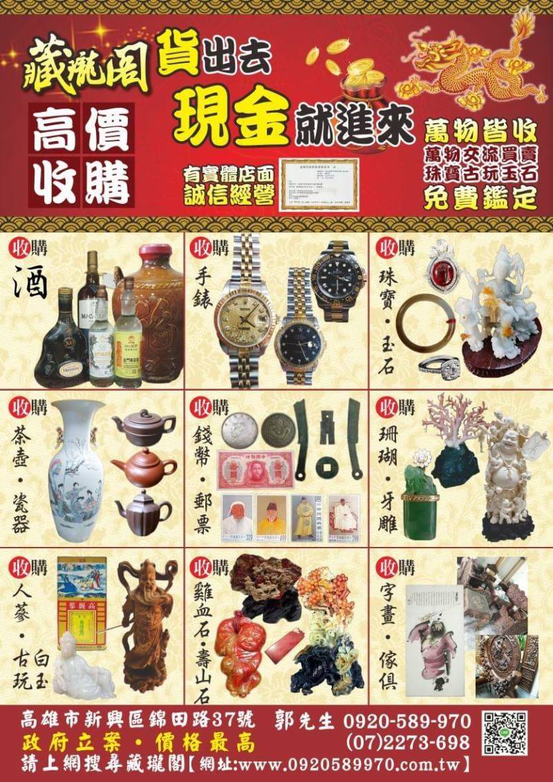 賣掉佔空間的老古董賺現金,歡迎將您的藏品拿到藏瓏閣,我們現金收購